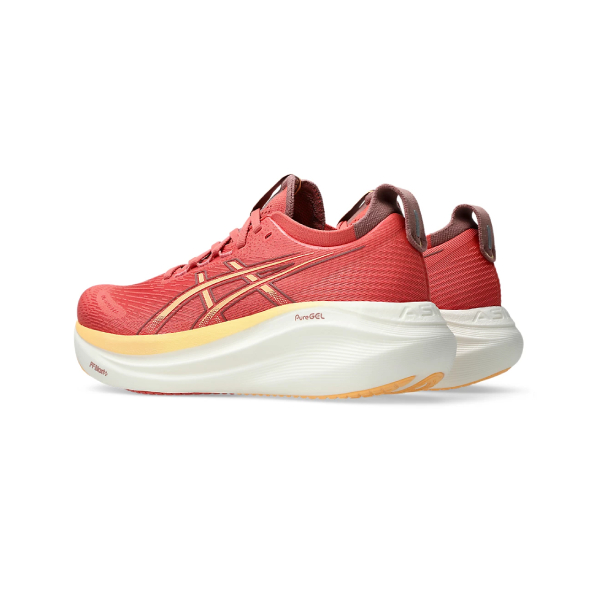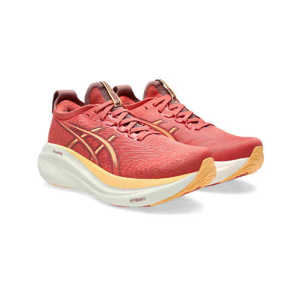 The GEL-NIMBUS™ 27 shoe’s soft cushioning properties help you feel like you’re landing on clouds. This design is revamped to help create a softer and smoother running experience.A soft engineered jacquard mesh upper comfortably wraps your foot while supplying advanced ventilation. Additionally, the knit tongue and collar help provide a soft and supportive feel.By using FF BLAST™ PLUS ECO cushioning, this trainer creates a lighter and softer cushioning experience.Lastly, HYBRID ASICSGRIP™ outsole combines ASICSGRIP™ rubber and AHARPLUS™ materials to help provide advanced grip for various terrains and advanced durability.